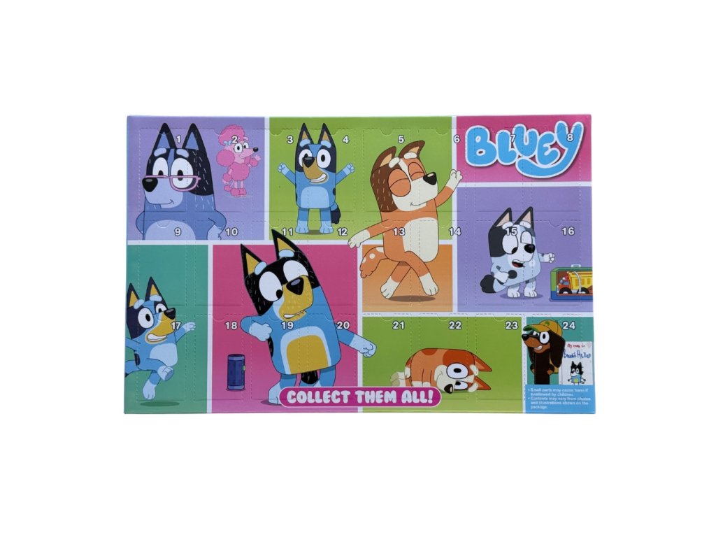 Adventní kalendář Bluey s 24 veselými figurkami, které potěší děti i dospělé každý den před Vánoci. Otevřete každý den nové překvapení s tímto jedinečným adventním kalendářem plným veselých figurek z pohádky Bluey.