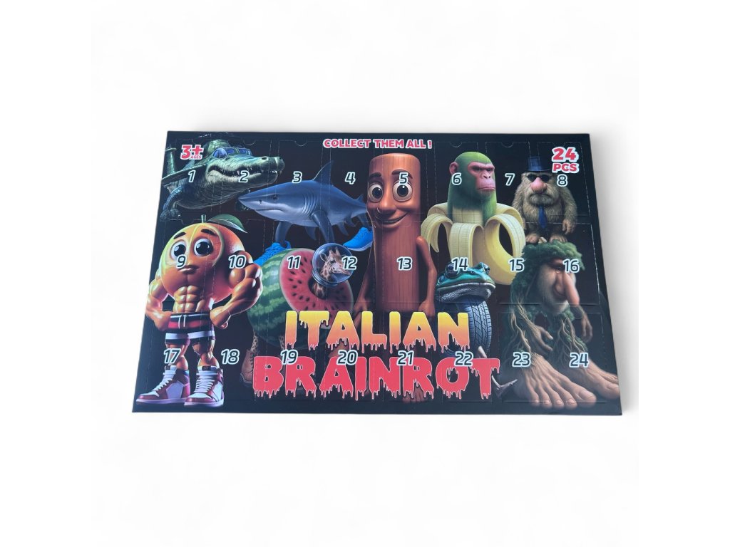 Adventní kalendář Italian Brainrot s 24 veselými figurkami, které potěší děti i dospělé každý den před Vánoci. Otevřete každý den nové překvapení s tímto jedinečným adventním kalendářem plným veselých figurek z internetového fenoménu Italian Brainrot!