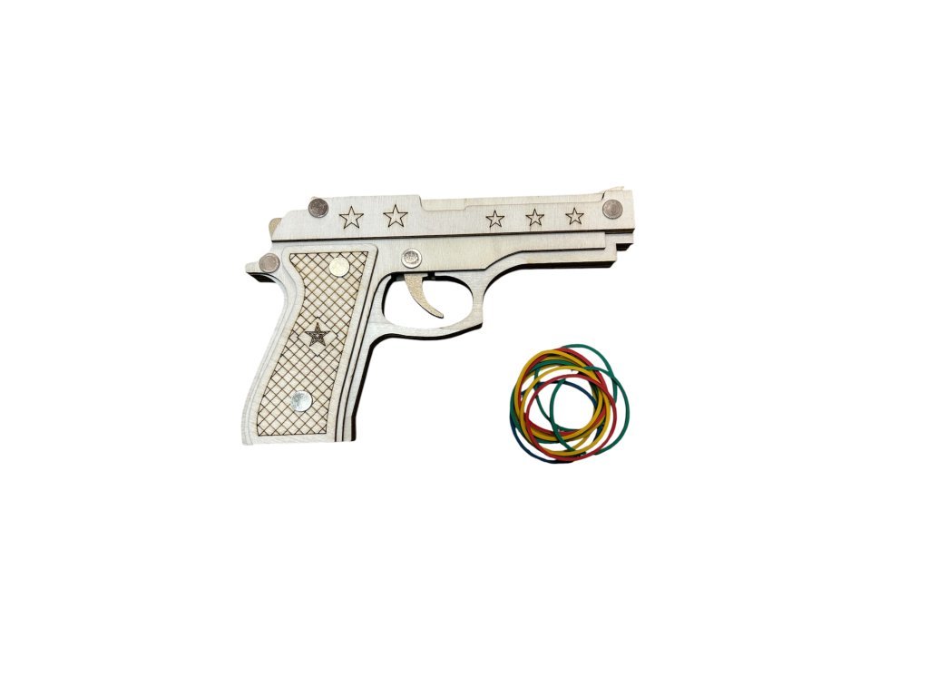 Tato pistole je vybavena mechanismem, který umožňuje střelbu gumiček. Design této pistole je inspirován klasickými ručními pistolemi a přináší do Vašich rukou nejen zábavu, ale i autentický pocit. Díky svému dřevěnému provedení působí velmi elegantně a stylově.