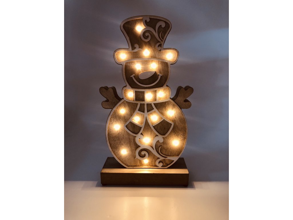 Dřevěná svítící dekorace - Sněhulák (33 cm)