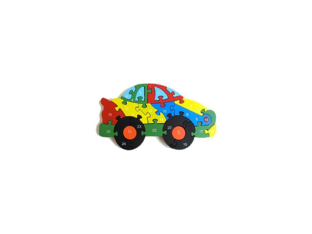 Dřevěné puzzle s abecedou. Rozvíjí psychomotoriku dítěte. Krásné barevné provedení – z jedné strany číslice, z druhé strany abeceda. Tyto tvary má dítě za úkol skládat k sobě, až se mu podaří poskládat celé puzzle. Tím si dítě nenásilně procvičuje písmena, čísla, barvy a jemnou motoriku. Menším dětem můžete při skládání pomoci.
