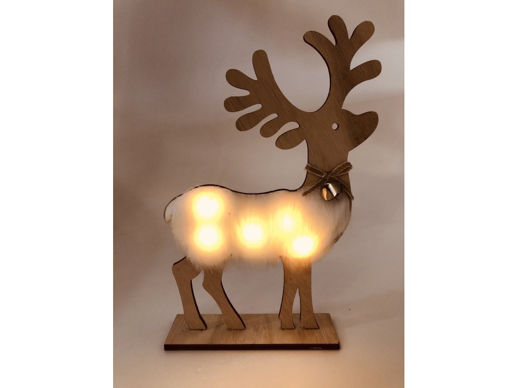 Zkrášlete si domov krásnou svítící dekorací soba, který má na sobě kožíšek jako opravdové zvíře s rolničkou. Skvěle bude vypadat na poličce nebo svátečním stole.