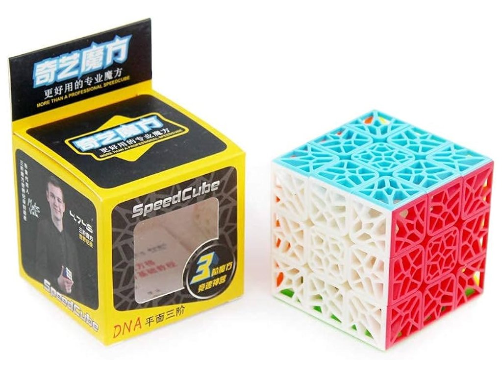 Rubikova kostka 3x3x3 DNA s velmi zajímavým a unikátním designem od výrobce QiYi. Každý vnější dílek má nádherně tvarovanou mřížku. Díky menšímu množství materiálu má menší hmotnost, nic to však nemění na perfektní kvalitě zpracování. Bohužel není povolena na oficiálních soutěžích.