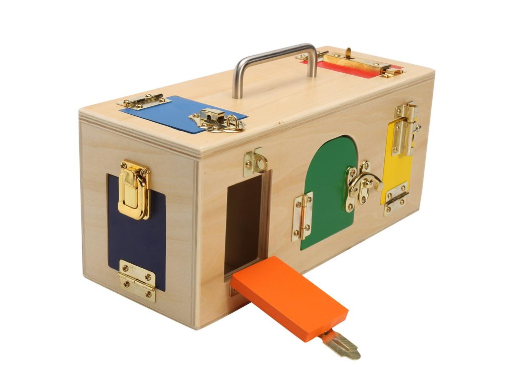 S tímto boxem objeví děti mnoho způsobů, jak lze otevřít malá dvířka a znova je zavřít. Box nabízí mnoho zamykacích mechanismů např. zaháknutí háčku, zamčení na řetízek, zasunutí, klasický zámek.