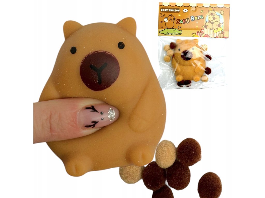 Bavte se a uvolněte stres a napětí s mačkací kapybarou. Skvělé pro děti, které milují hmatové, pružné a mačkací hračky, jako pomůcka, když se cítí úzkostlivě nebo jen chcete zaměstnat jejich ruce.