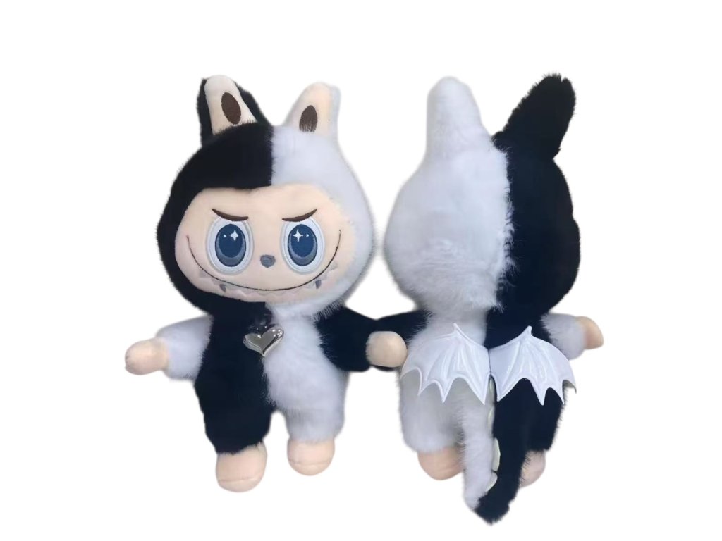 Plyšový Labubu The Monsters s křídly a ocasem - černobílý (60 cm)