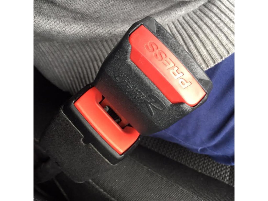 Spony pro eliminaci signálu, že v autě nejsou žádné bezpečnostní pásy. Mají červené tlačítko „Stiskněte“, které umožňuje rozepnutí spony.