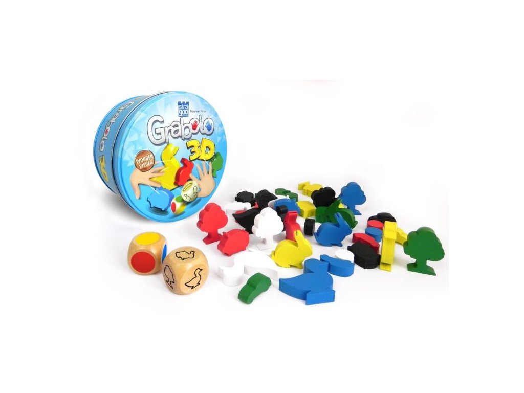 Další varianta oblíbené postřehové hry GRABOLO, tentokrát s dřevěnými figurkami. Dokaž, že máš nejrychlejší ruce, ostří zrak a skvělou paměť. Kostky určí kombinaci barvy a tvaru, ty najdi správnou figurku jako první. Cílem hry je získat předepsaný počet figurek.