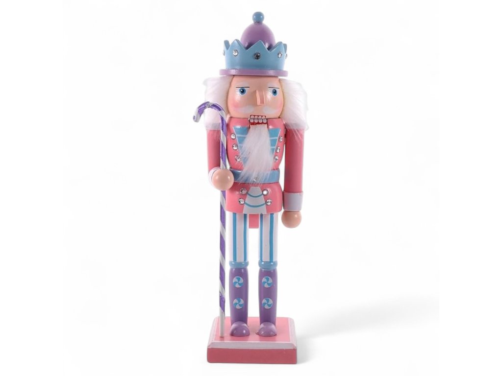 Vánoční dekorace louskáček - Modro-fialový s holí (40 cm)