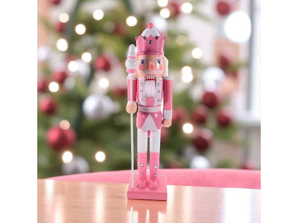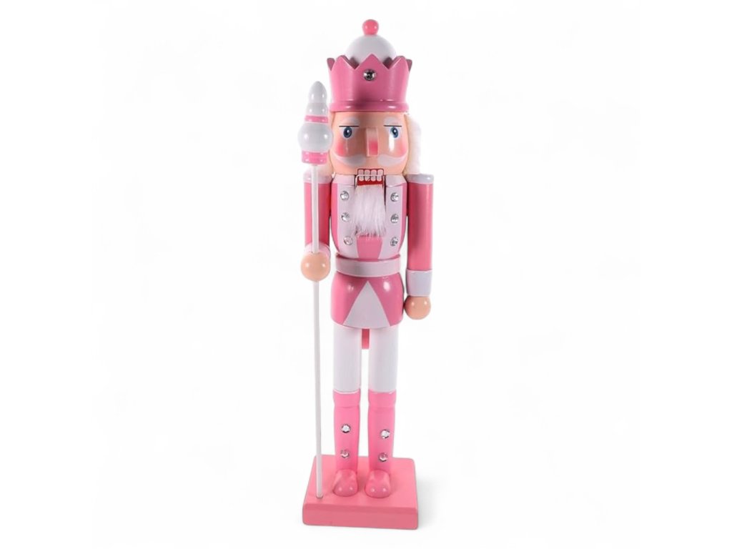 Vánoční dekorace louskáček - Růžový s holí (30 cm)