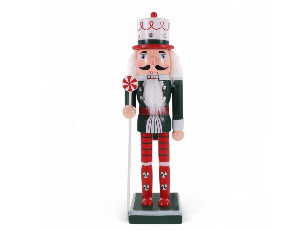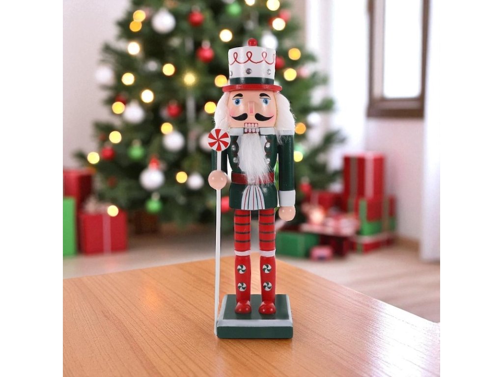 Vánoční dekorace louskáček - Tmavě zelený s holí (30 cm)