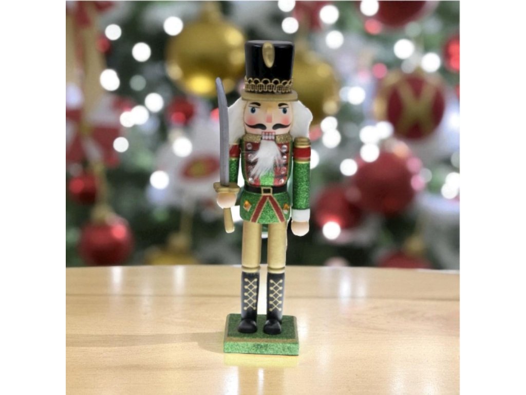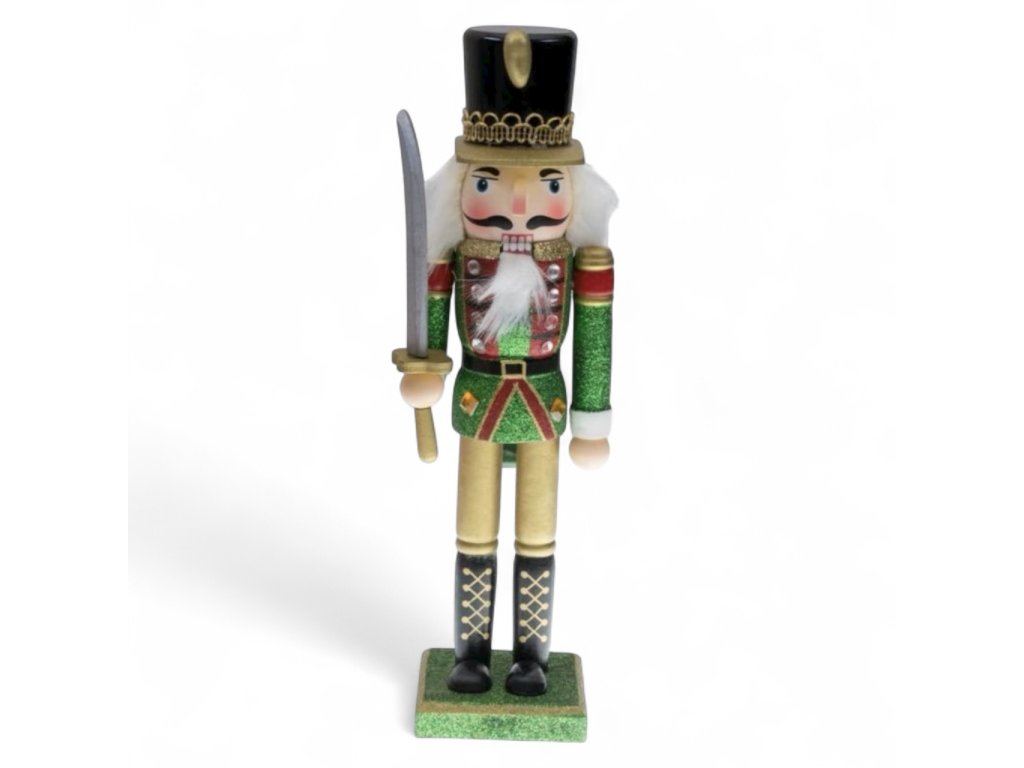 Vánoční dekorace louskáček - Zeleno-zlatý se šavlí (30 cm)