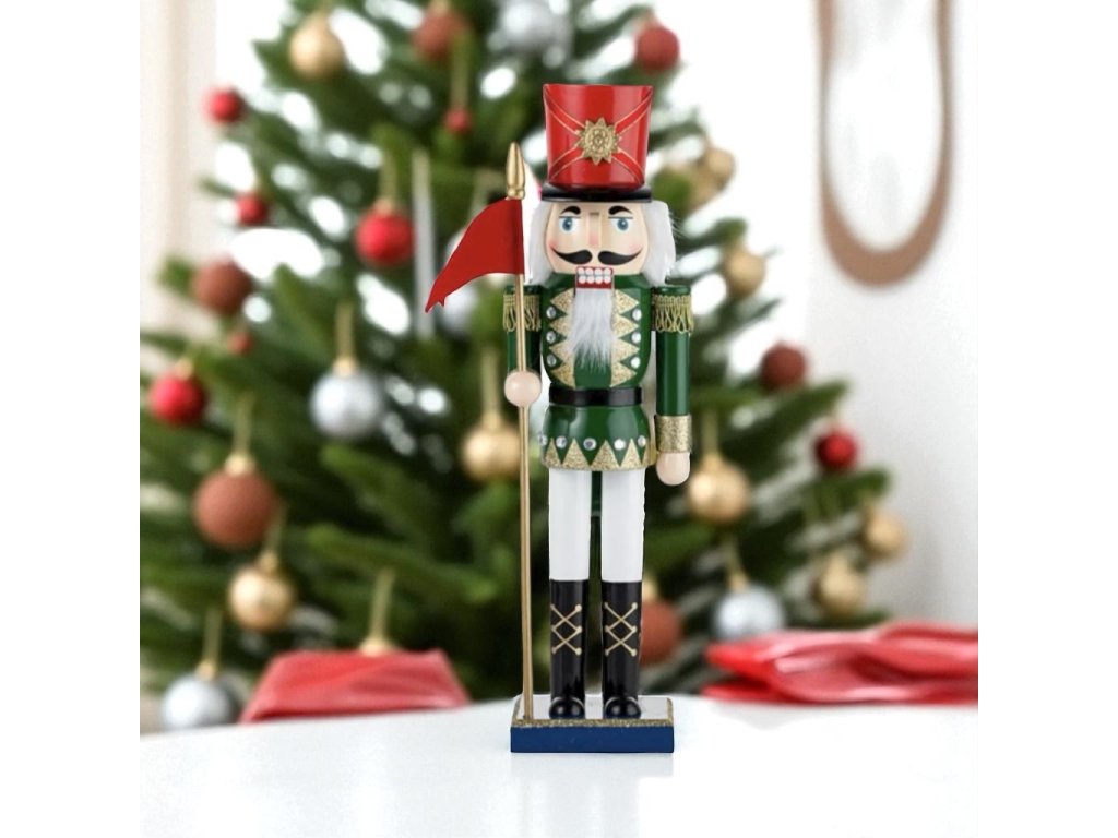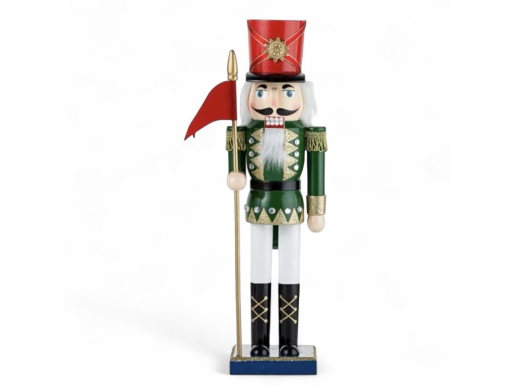 Vánoční dekorace louskáček - Zelený s červenou vlajkou (40 cm)