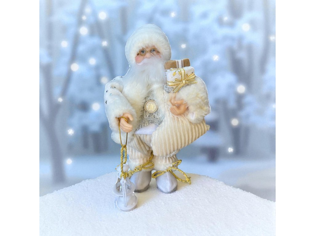 Tento štědrý dědeček je oděn do teplého zimního oblečení a vypadá, že je perfektně připravený na rozvoz dárků. Jeho milý úsměv vám navodí pozitivní náladu a zpříjemní přežití vánočních svátků.
