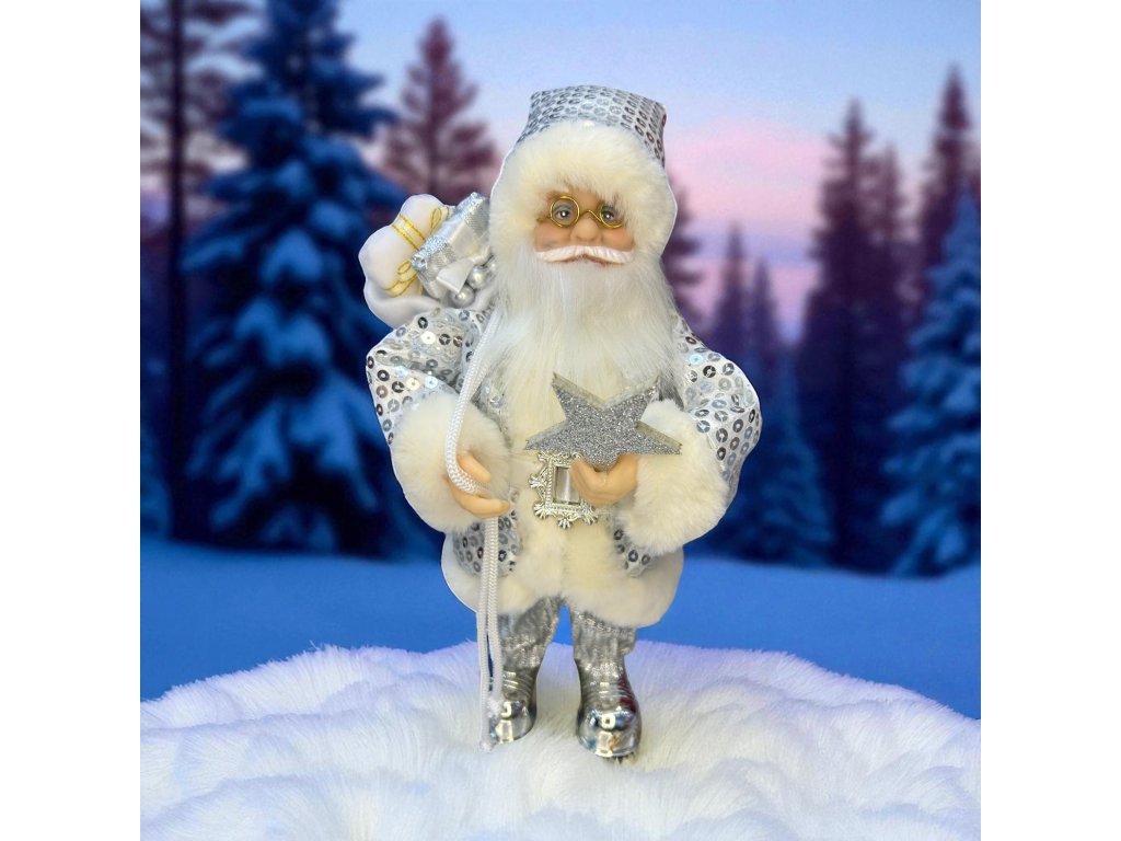 Vánoční dekorace Santa Claus - Stříbrný s hvězdou (30 cm)