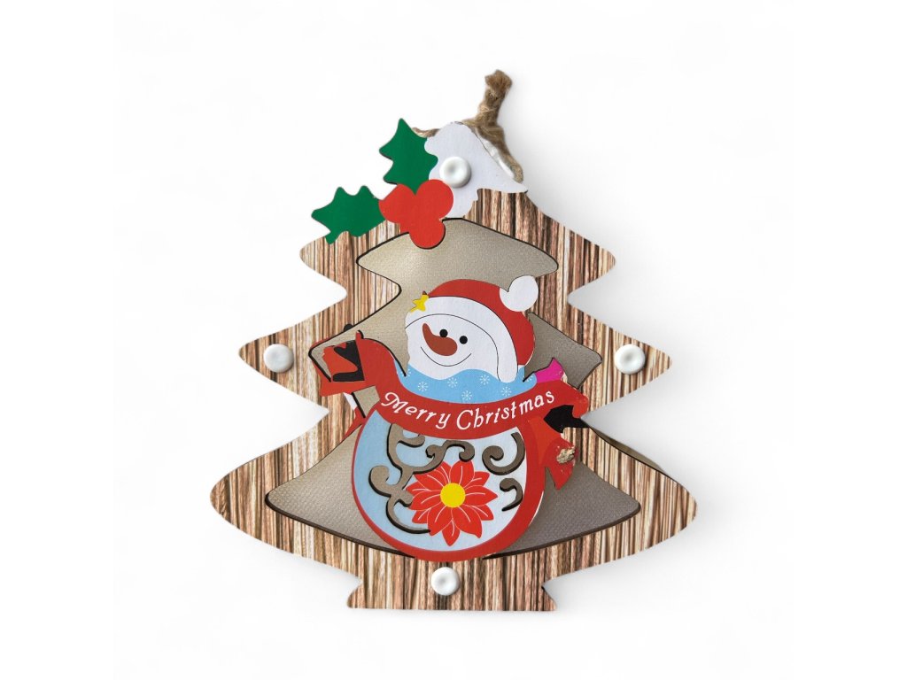 Vánoční dřevěná ozdoba s LED osvětlením - Sněhulák (stromek)