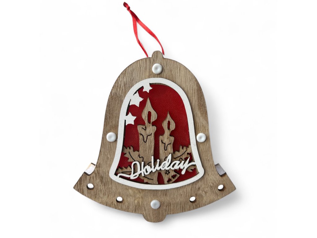 Vánoční dřevěná ozdoba s LED osvětlením - Zvonek