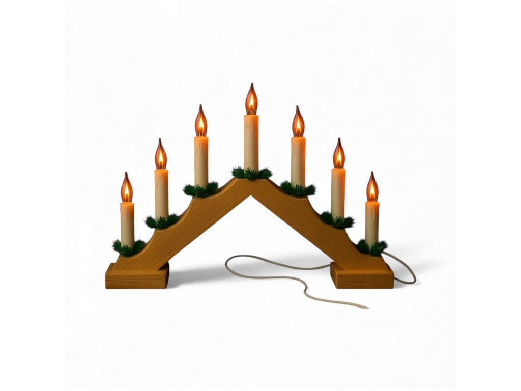 Vánoční svícen pyramida - 7 žárovek ORANŽOVÝ PLAMEN (do zásuvky)