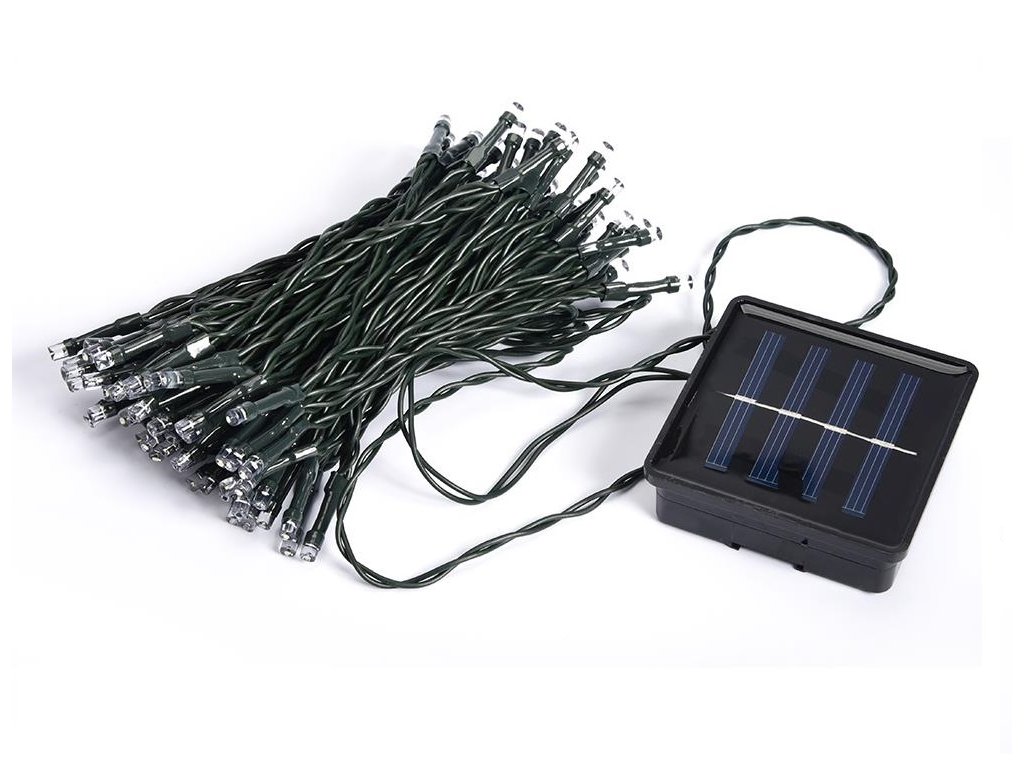Venkovní vánoční led osvětlení na solární panel - teplá bílá (10 m)