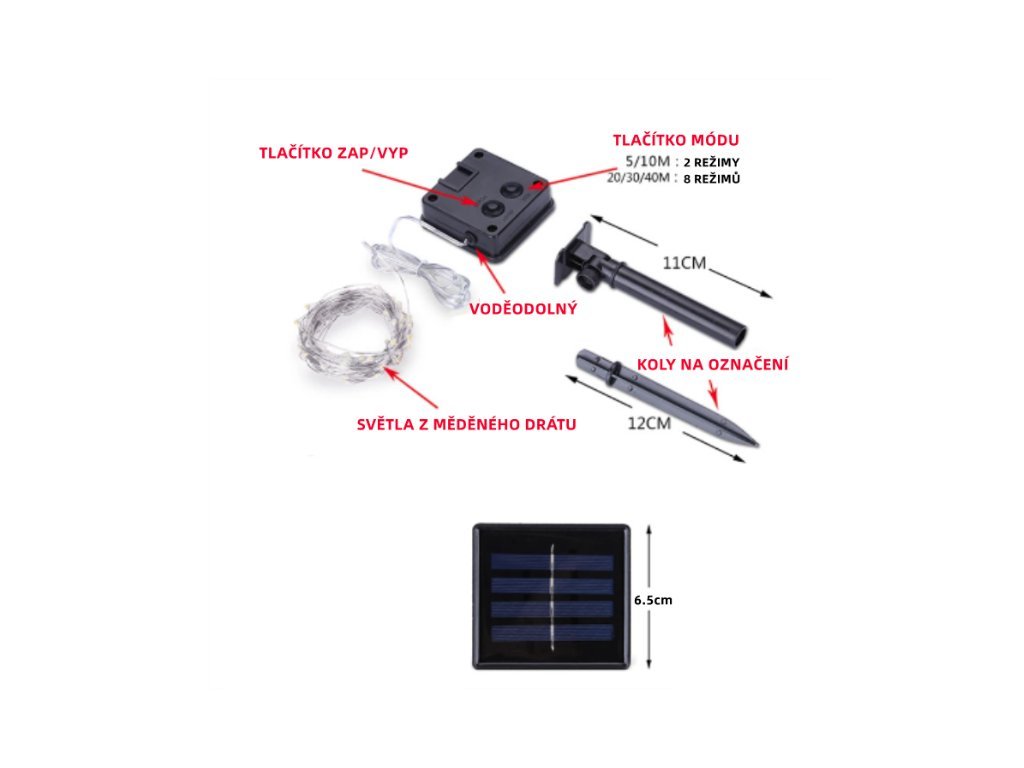 Tato solární sada je vhodná k ozdobení vaší zahrady, balkonu, živého plotu nebo stromu bez potřeby elektrického proudu